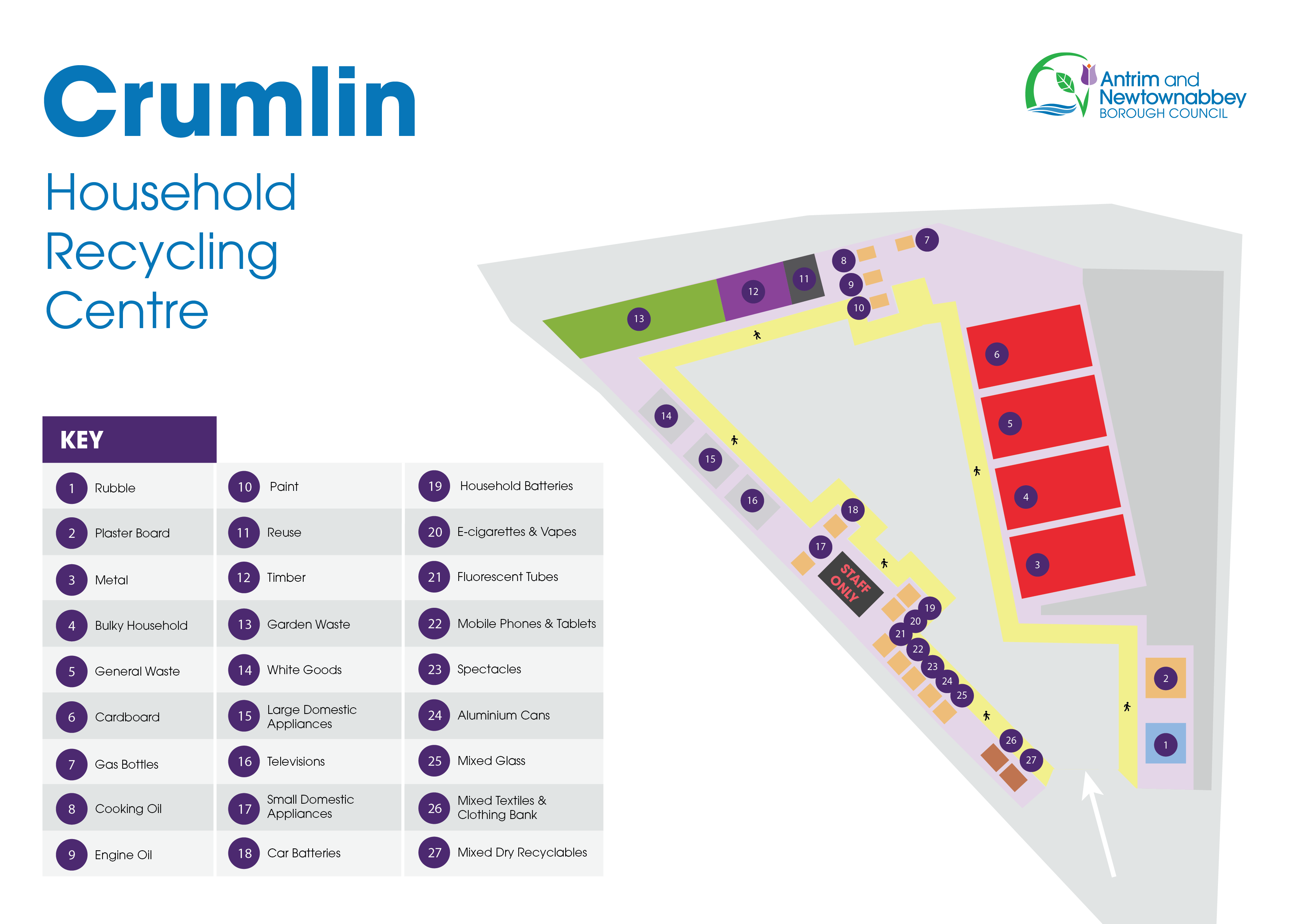 The following items can be recycled at Crumlin Recycling Centre: