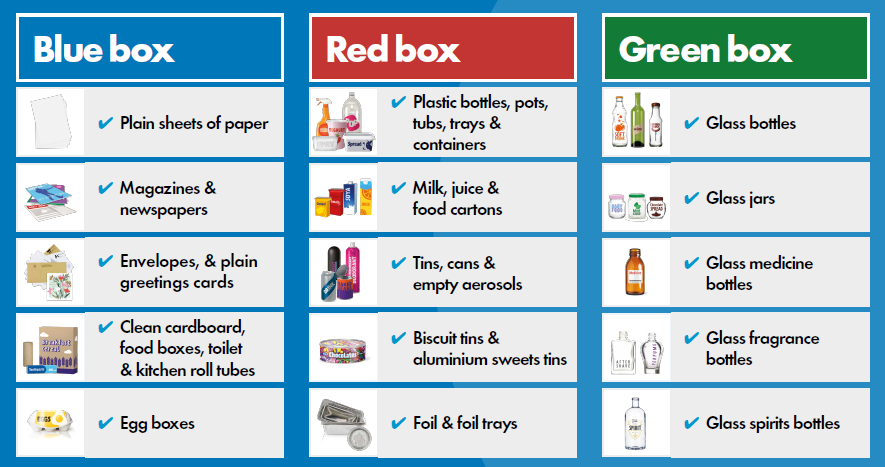 You can put the following dry recycling in your Wheelie Box: